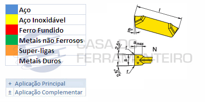 | Código | descrição (mm) | s (mm) | l (mm) | r (mm) | a_max | | | | | | | Disponibilidade |