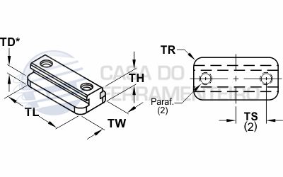 | TGX50 | Polegada | XL | 1,750" | 0,615" | 0,250" | 0,312" | 3/8-16x1-1/4 | 0,625" | 2,000" | 0,500" | |