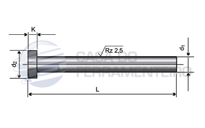Pino Extrator tipo HA02 similar ao DIN ISO 6751 com cabeça cilíndrica Materiais: Aço inoxidável ISO 1.4125. Execução: Retificado, cabeça forjada a quente. Tolerância: Haste g6.