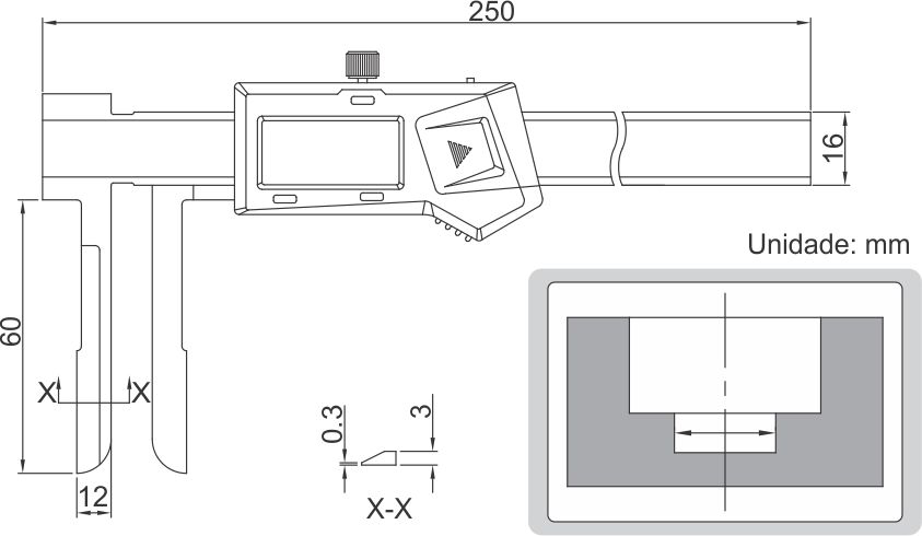 Paquímetro digital com bicos tipo faca